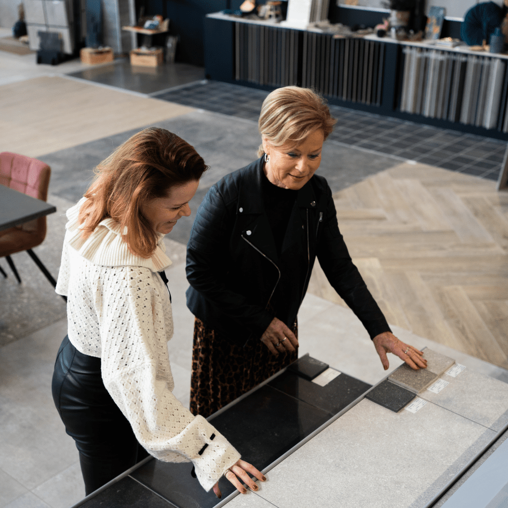 Vervolgens gaan we samen door de showroom om op zoek te gaan naar jouw droomtegels en sanitair. We werken graag met moodboards, zodat de combinatie meteen een beetje meer visueel wordt. We denken met je mee en nemen ruim de tijd om alle opties te bekijken en te bespreken, totdat we uiteindelijk de perfecte combinatie gevonden hebben!