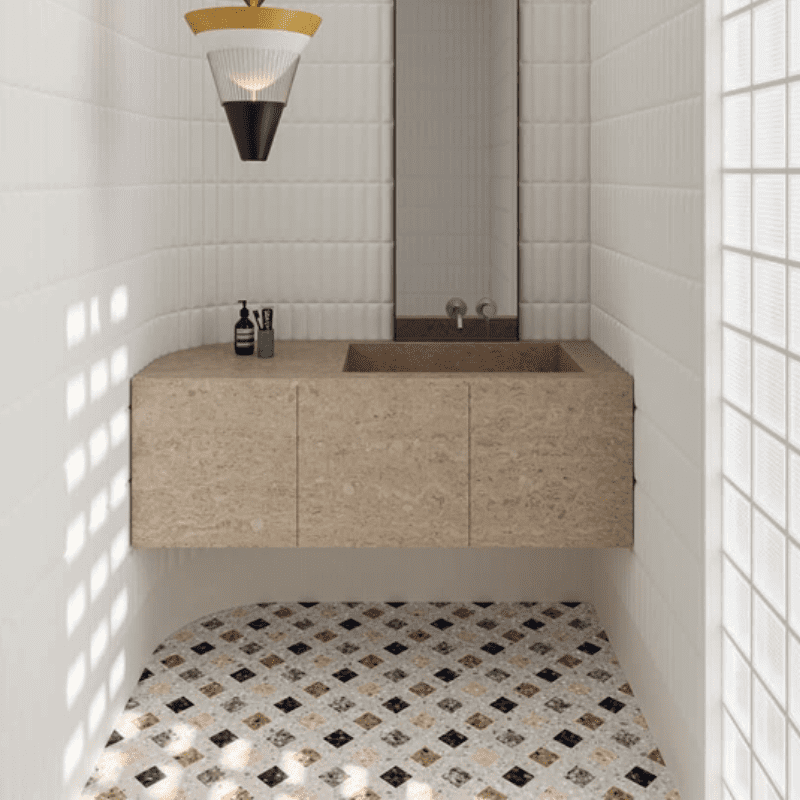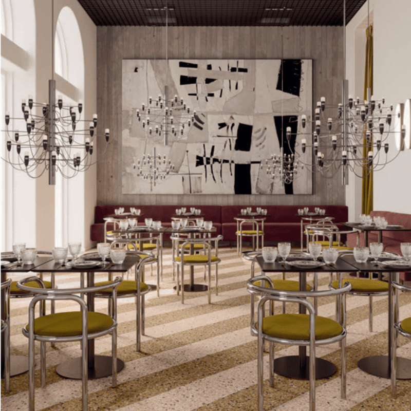 De Chicco Collectie komt uit Italië. Deze bewerkte Venetiaanse stijl is een materiaal dat op een transversale manier tot iedereen in de samenleving behoort. Van buitenhuizen tot entreehallen van gebouwen in Milaan, van vloeren van basisscholen tot de trottoirs van Bologna’s portico’s.