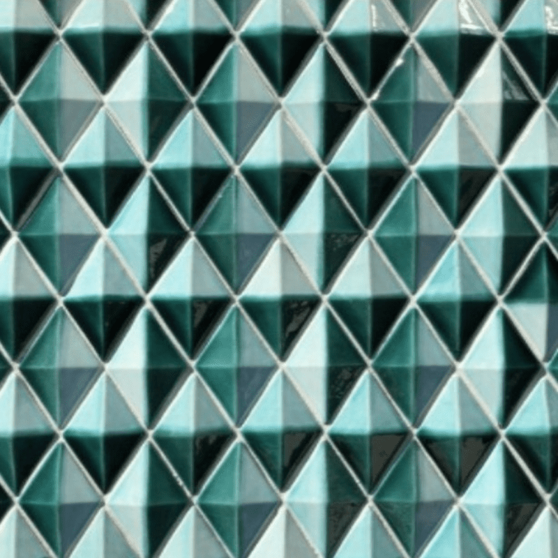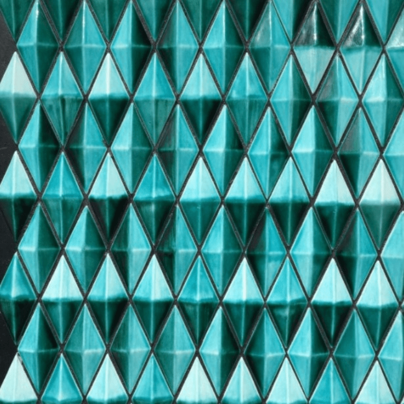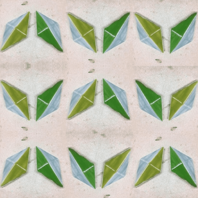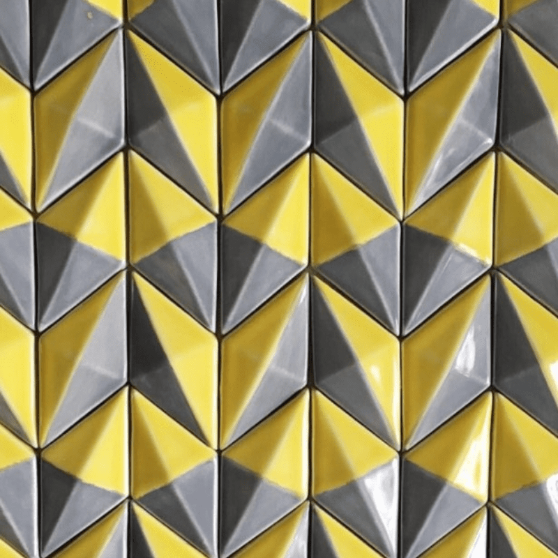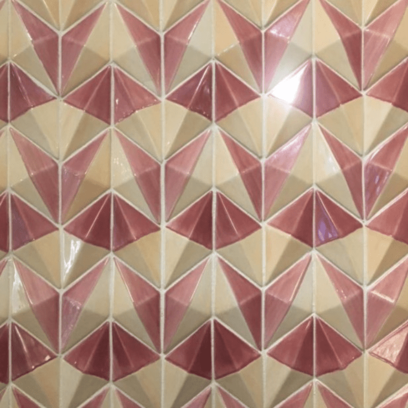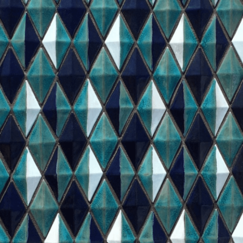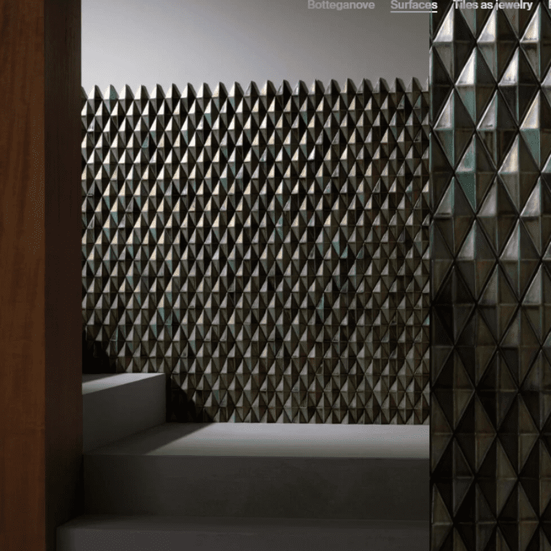 De basistegel van dit mozaïekpatroon is een beschaafd object vol citaten. Een verlengde diamant, driedimensionaal gemodelleerd, die ons onmiddellijk doet denken aan keramische tegels maar ook aan de afbeeldingen van Gio Ponti. Een mozaïek dat een mediterrane en Italiaanse taal spreekt, een Harlekijnse taal met zijn gepatchte Venetiaanse carnavalskostuum en de drie-dimensionaliteit van kinetische kunst.