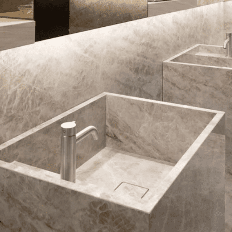 Amberkleuren wisselen elkaar af over het oppervlak, een warm en omhullend kleurenpalet gaat een interactie aan met het licht, waardoor de zachte en golvende textuur wordt versterkt, rijk aan verweven aders die een elegante grafische wisselwerking creëren.
