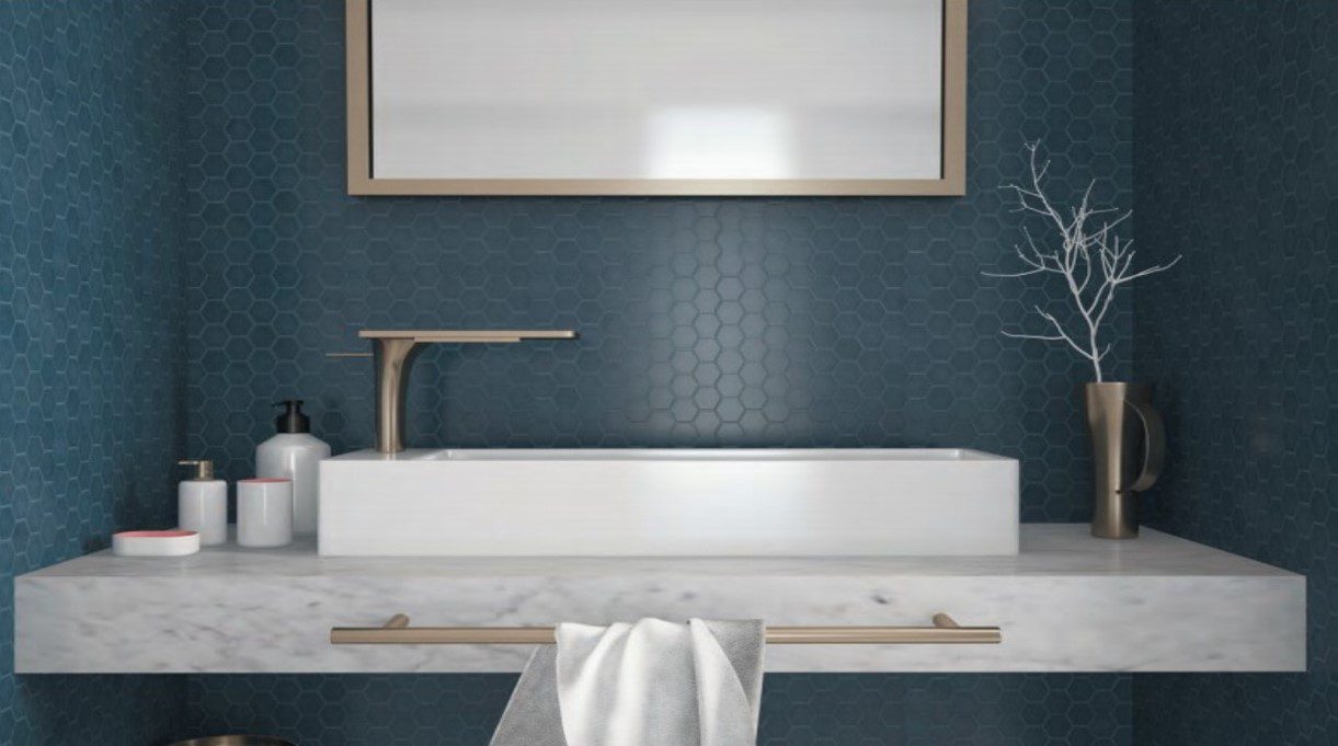 De Valencia Collectie kenmerkt zich door zeshoekige mozaïeken in de meest verbluffende kleuren zoals mosterd en turquoise. Deze mozaïeken zijn gemaakt van gerecycled glas waardoor ze erg duurzaam zijn.